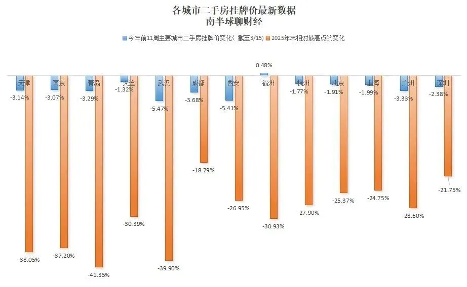 今年第11周,全国二手房挂牌价环比下降0.14%