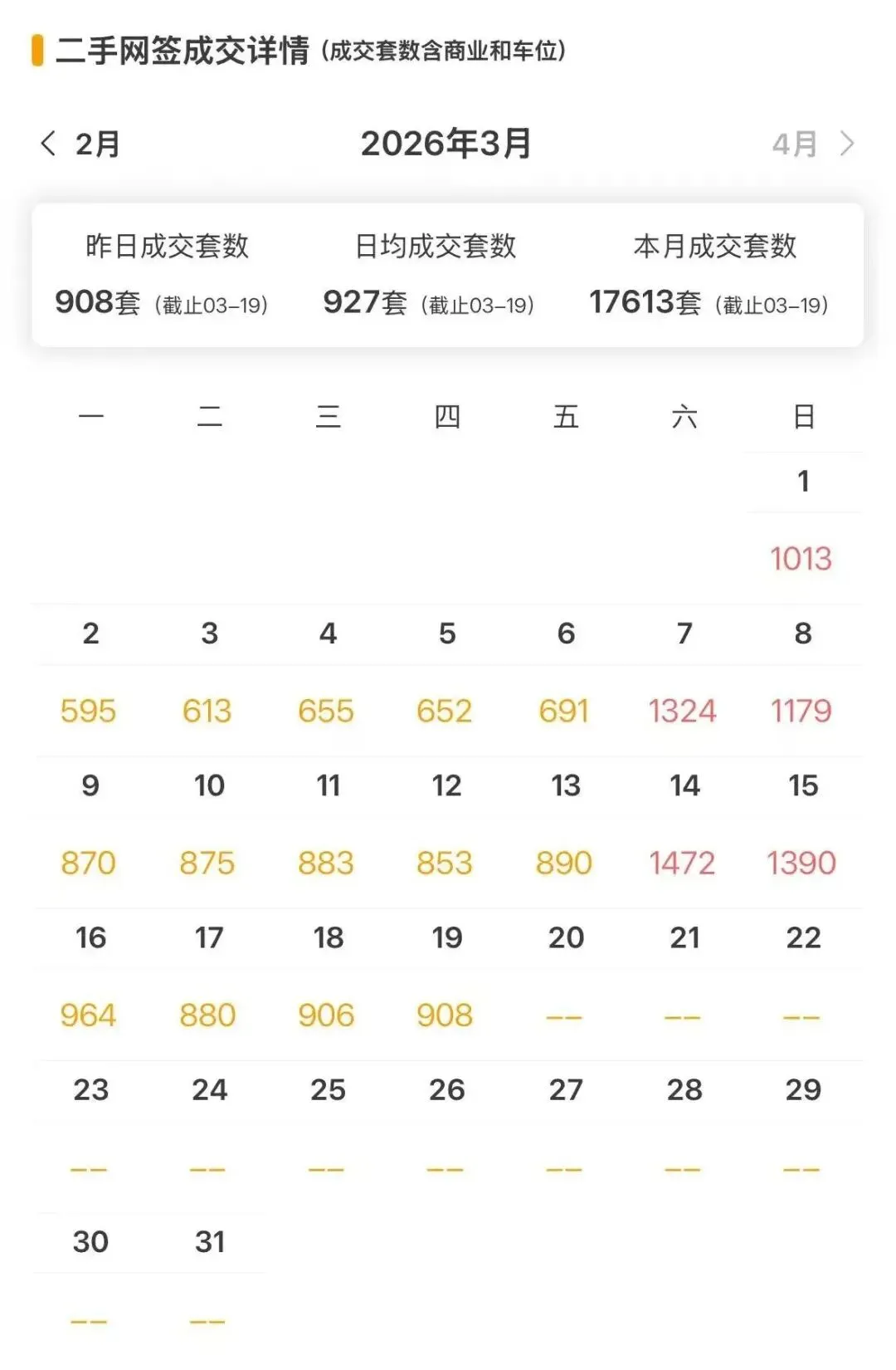 上海二手房最新成交量:昨日(3月19日)网签908套(含住宅、商业、车位等)。