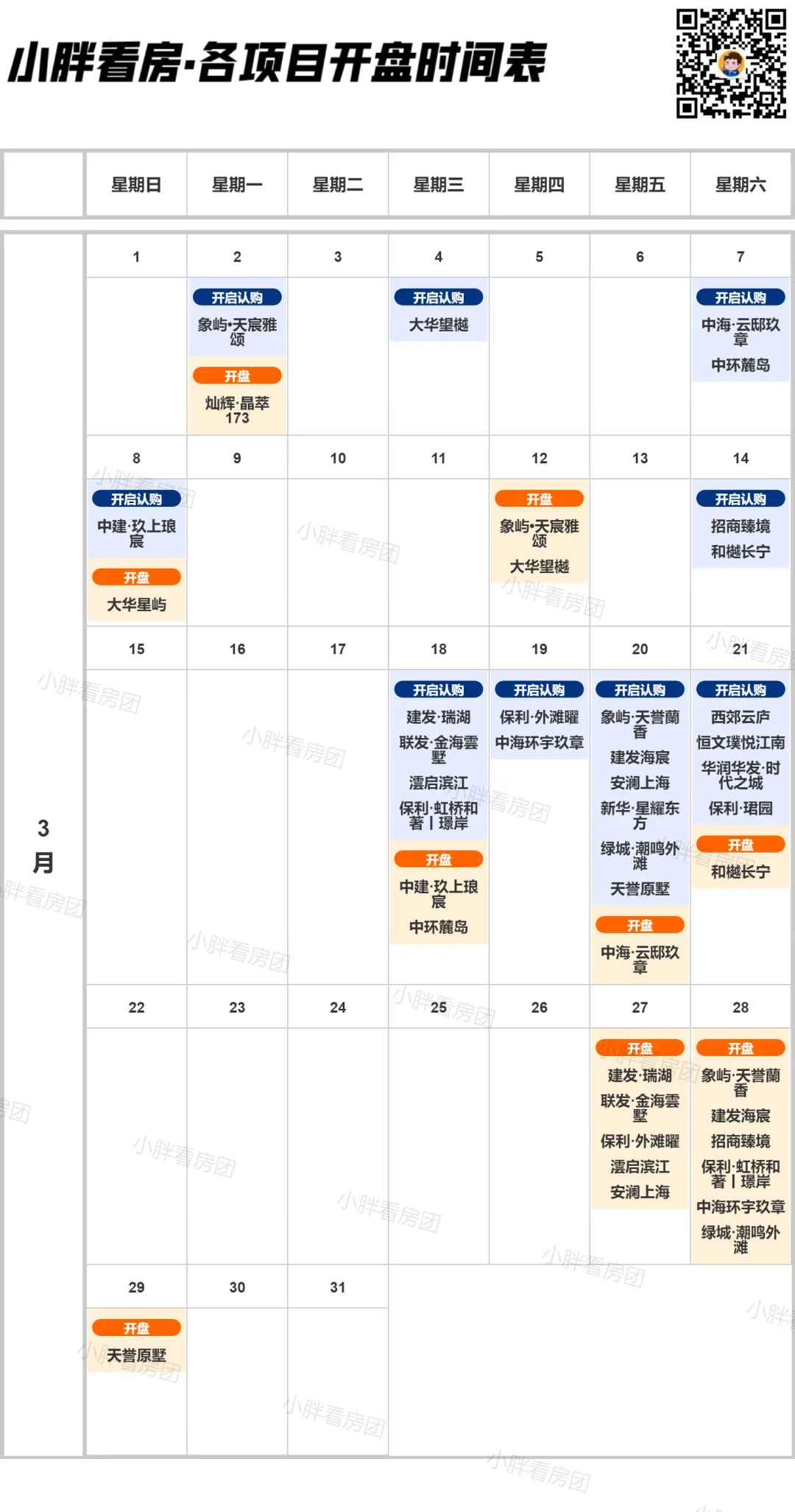 天誉原墅,象屿·天誉蘭香,建发海宸,安澜上海,新华·星耀东方,绿城·潮鸣外滩,3月20日开启认购,至3月24日;