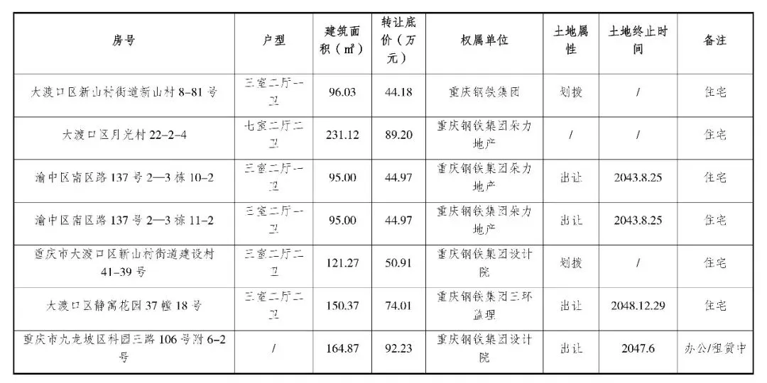 资产位于大渡口区、渝中区、九龙坡区7套房产