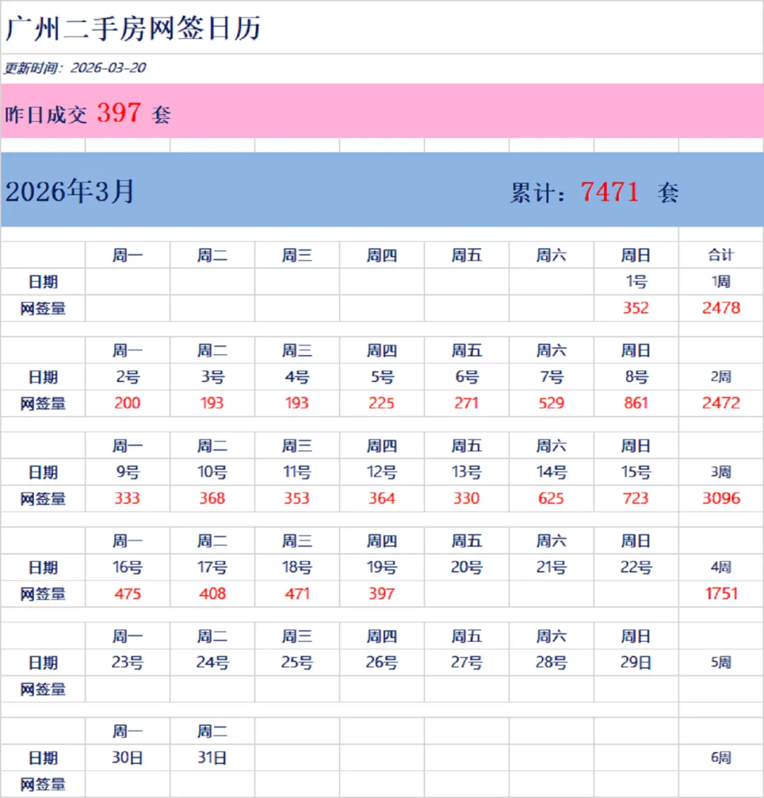 广州市新房和二手房网签数据每天更新中,需要了解网签数据可以关注持续更新。