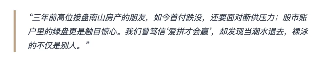 过去十年,深圳人的财富逻辑建立在“增值”二字上。我们习惯了房价每年10%的涨幅,习惯了理财产品的刚兑。然而,现实给了我们一记响亮的耳光。