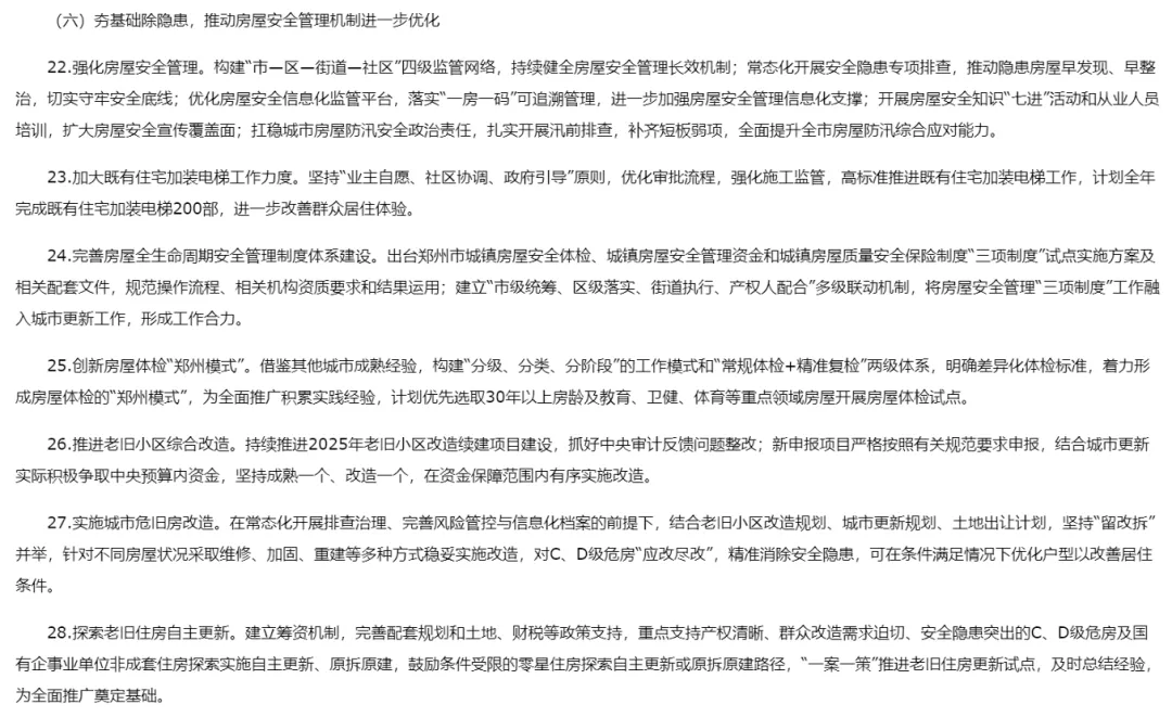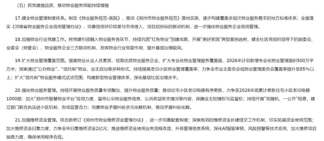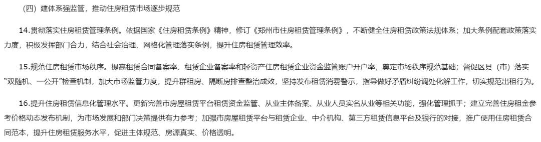 再加上公租房实现市区“全域通办”和线上“自主选房”,申请便利度大幅提升。以前,那些位置偏远、品质一般、缺乏学区和地铁加持的老旧小户型,最大的“接盘侠”是刚来郑州的年轻人。现在,这些年轻人可以选择位置更好、条件更优、价格更低的人才公寓和保租房。结果就是:低端刚需盘的“客群基础”被分流。如果你的手上有这类房产,未来流动性会越来越差。工作要点中,租赁市场被提到了前所未有的高度:纳管各类租赁住房3万套(间),住房租赁企业备案“应备尽备”。同时,官方将更新完善房屋租赁平台的资金监管、从业主体备案等功能,并推广使用住房租赁合同范本。这传递的信号很明确:租赁市场正在告别“野蛮生长”,走向规范化、透明化、规模化。对于个人房东而言,这意味着:如果不通过正规机构备案、不采用标准合同,未来可能面临监管压力;违规隔断、群租房等“灰色地带”将越来越难生存;专业化租赁企业的竞争力会越来越强,个人房东的议价空间被压缩。未来的租赁市场,将是“正规军”的天下。个人房东要么主动规范、提升服务,要么被市场边缘化。老旧小区更新不再只是“刷刷墙、修修路”,而是进入深水区:完成1000部老旧电梯更新,加装200部电梯;