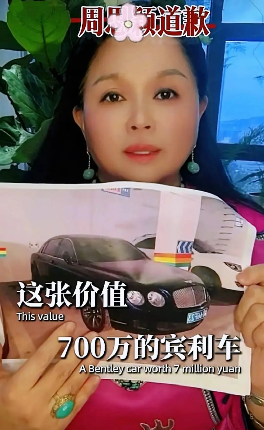 3月20日,有网友翻看举报人的社交账号,找到了该女子的道歉视频,举报人在视频中说:周某某处长,对不起,我不应该公开你母亲名下价值700万的宾利车和三年之内名下多了几个亿的房产。