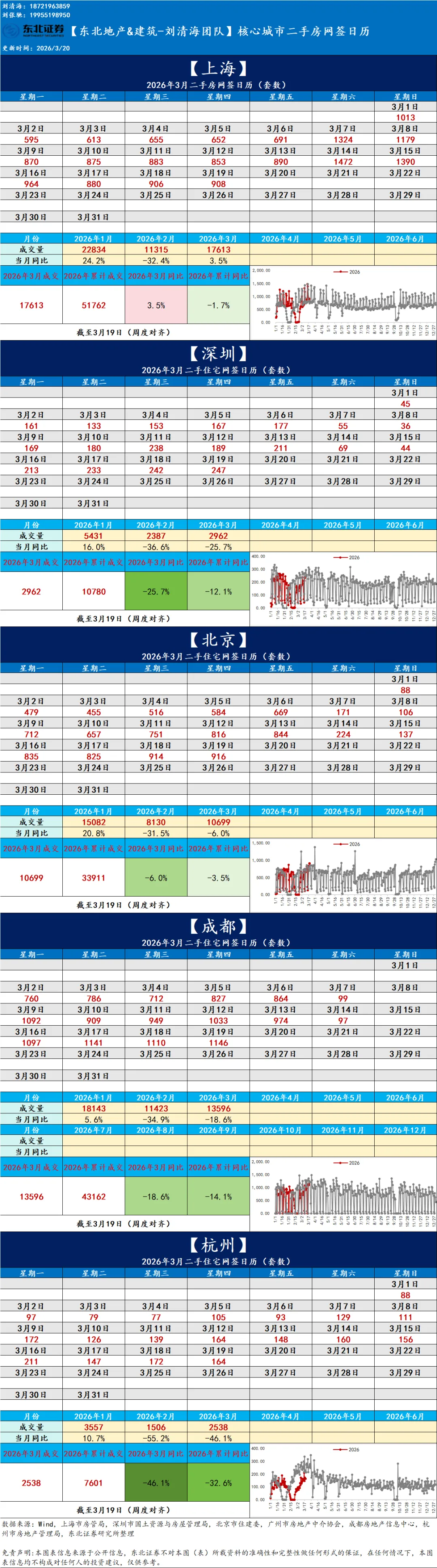 【高频数据】新房、二手房同比降幅收窄——日度高频20260319丨东北地产建筑刘清海团队