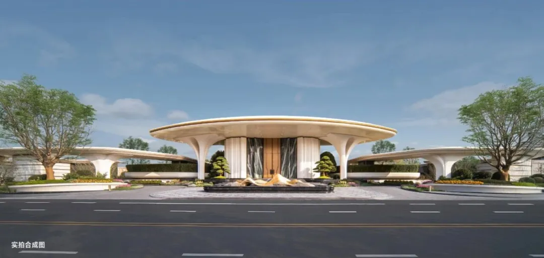 从主入口进入,约85米超宽尺度,约9.5米高鎏金大门,贵气十足。步入其中后,整个社区的景观如同立体山水画,徐徐展开。