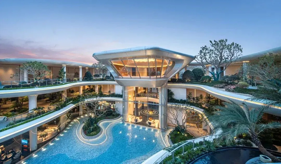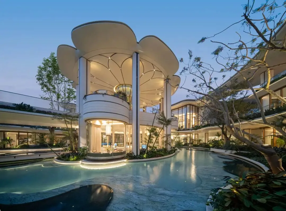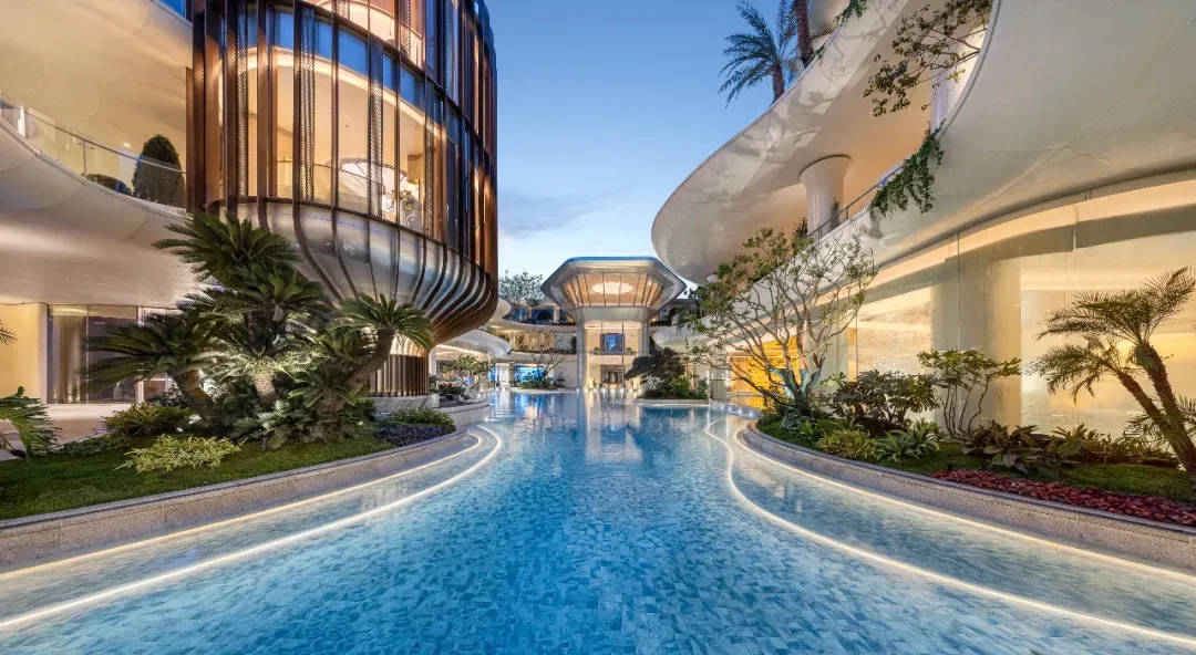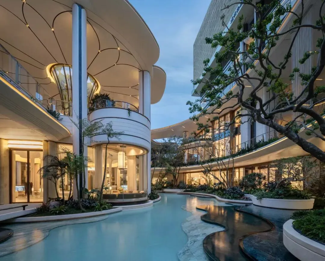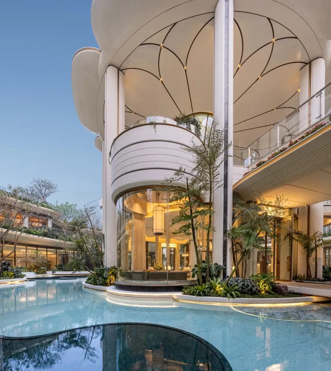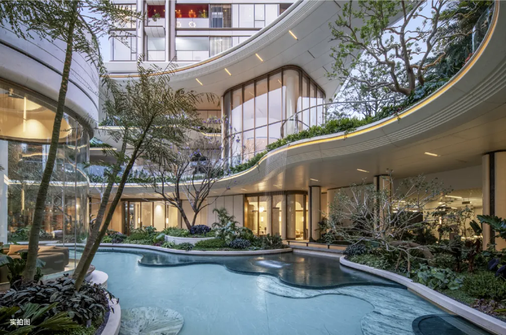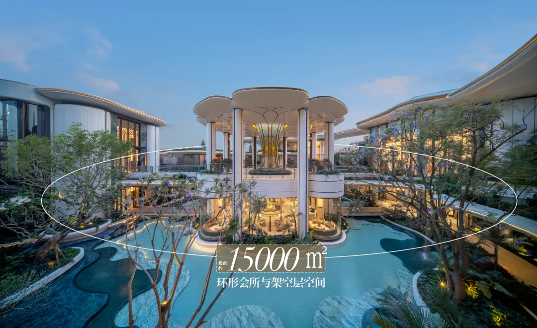 项目以“颠覆性产品思维”重塑高端住宅标准:3.15米层高、6.3米架空层层高、全玻璃幕墙、全域风雨连廊、立体园林水系……超100米的超阔门幅,16米落差瀑布和钻石门厅设计。