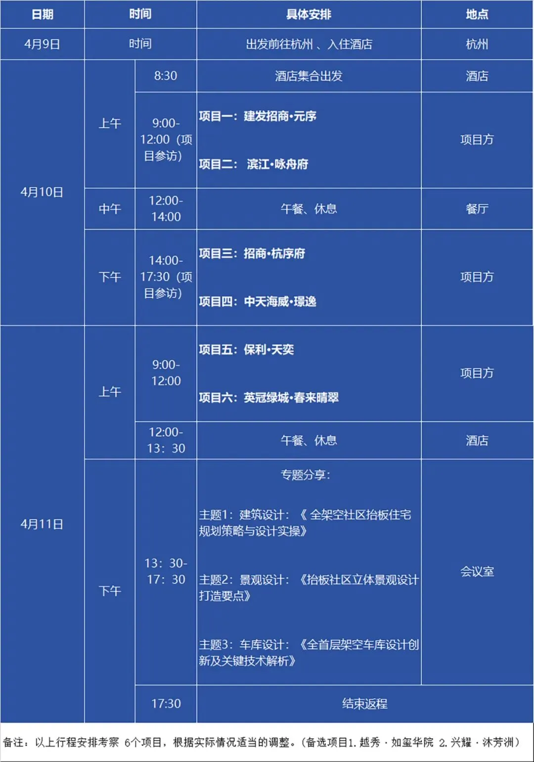 我们将用两天时间(4月10-11日),带您走进中国“抬板住宅”的潮流样板区——杭州,零距离接触6个最具代表性的典型项目,并特邀一线设计操盘手与产品研发专家,通过一场高浓度的主题研讨会,为您揭开这一“楼市新物种”背后的设计逻辑与居住价值密码。