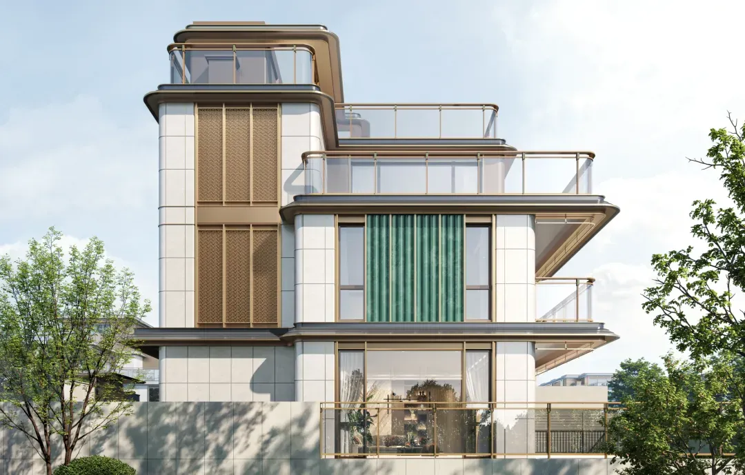 立面设计独具匠心,以“暖金灰”为主色调,营造出一种低调奢华的质感。这种色调的选择并非随意为之,而是经过对成都城市文化、自然环境以及居住者审美需求的深入研究。暖金灰既融合了金色的高贵与温暖,又带有灰色的沉稳与内敛,与成都这座城市的气质相得益彰。