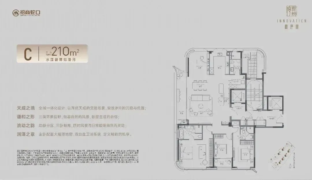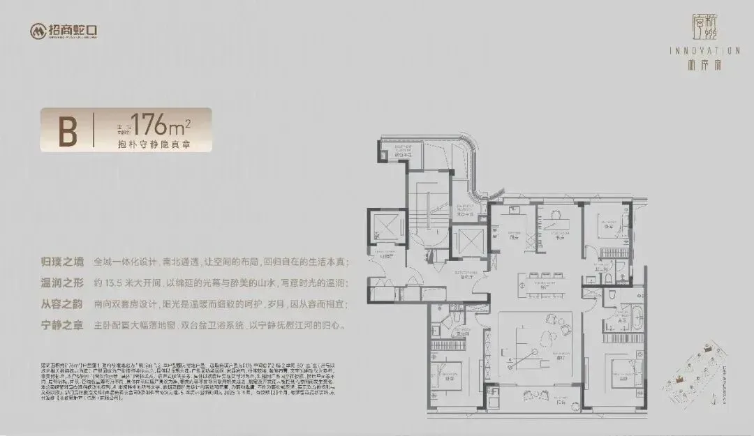 项目打造建面约123-173㎡的主力户型。该项目在户型打造上也有诸多突破,如建筑面积约139㎡户型采用约6.8米全景横厅,采光极佳;约21㎡主卧带步入式衣帽间,搭配270°转角飘窗,更奢华明亮;双洄游动线体系既保证隐私又创造多元互动场景。