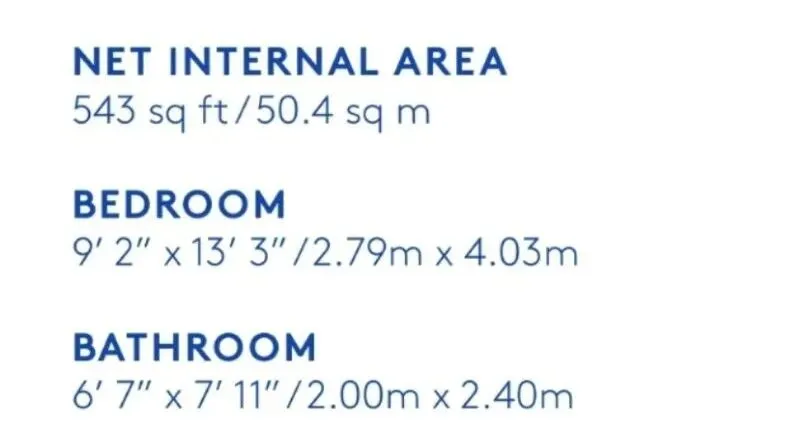 Net Size净面积:50.4 sqm平方米,543sqft平方英尺