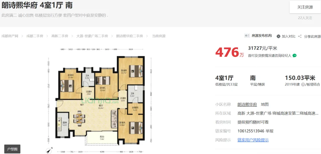 2026年03月13日,【那坊归心】成都青羊外光华存量房(二手房)建发央著建面168平套四报价480万,是否适合90后?