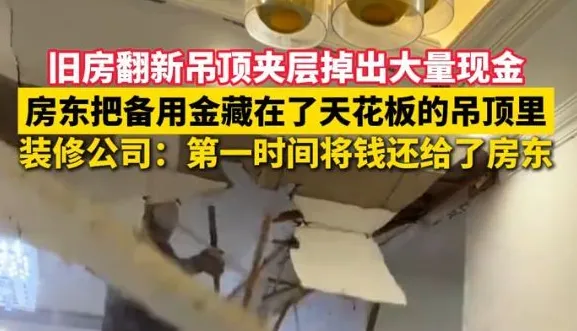 想象一下,你正在翻新一套老旧的二手房,锤起灰落,准备迎接新生活。突然,一榔头下去,天花板夹层里竟纷纷扬扬,飘下数十张百元大钞——这不是电影剧情,而是3月13日,发生在四川成都周先生身上的真实一幕。