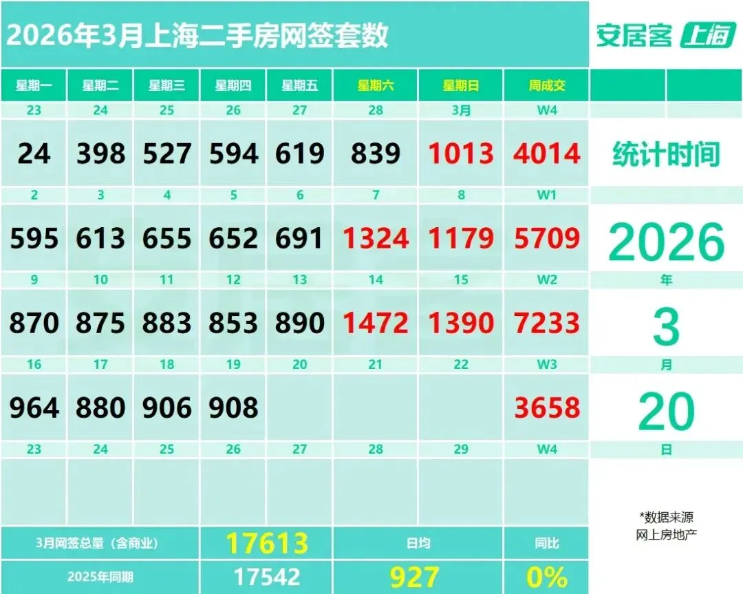 很显然到3月20日,过完年的第三周,日均已经要破1052套了,纯住宅要接近1000套。20日前17613+1012=18625,20日之后还有11天,包含四个周末2862*2=5724再加上930*6=5580 等于11304,那三月确实有可能非常接近30000。