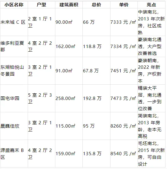 这些房源,覆盖了从刚需到高端改善的全需求,无论是首次置业的年轻人,还是想要升级住房的家庭,都能找到合适的选择。