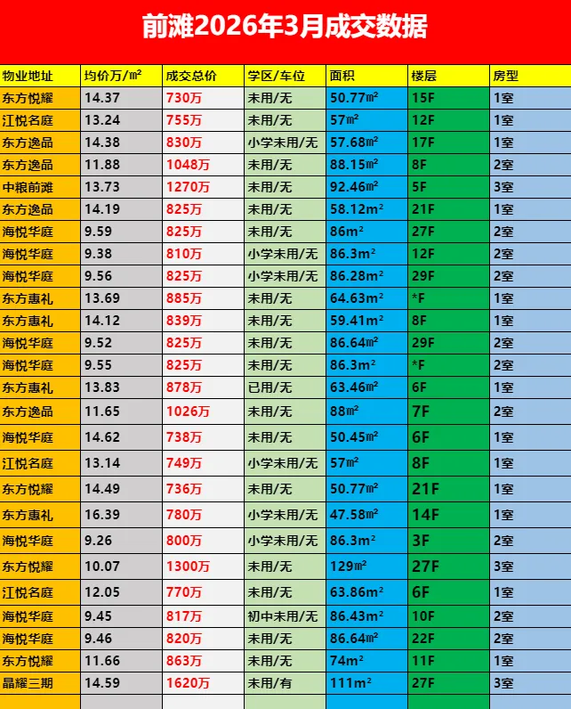 前滩 3 月成交数据直观印证:华二学区是当前市场的绝对核心,教育资源的稀缺性与家长的刚性需求,共同推高了学区房的成交热度。