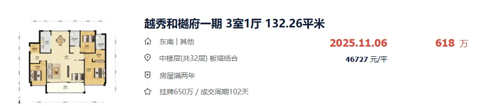 二期建面约130㎡,成交价600万元;
