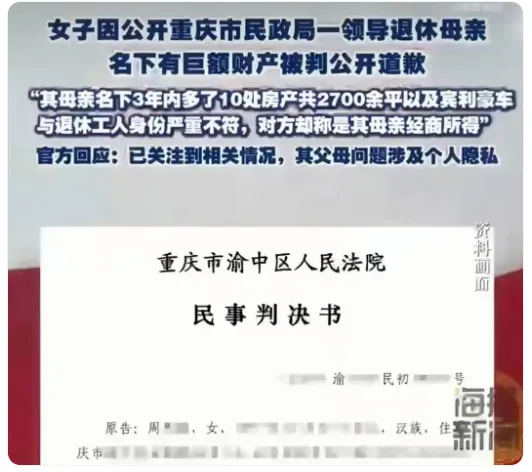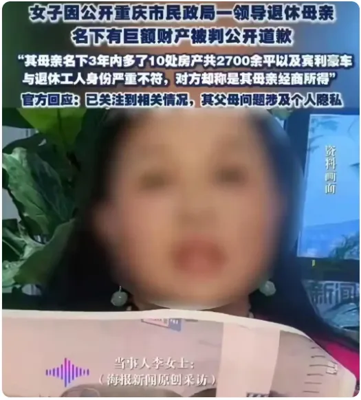 重庆市民政局一领导退休母亲三年内名下突增10处房产,总价数亿,还配有宾利豪车——这则消息如一块巨石砸入舆论场,激起滔天巨浪。举报者因公开质疑其财产来源被判公开道歉,而民政局回应称“反映的不是工作问题,涉及个人隐私”。公众的愤怒与质疑随之爆发:真相尚未水落石出,仅凭“隐私权”就要求举报者道歉,这判决是否太过草率?