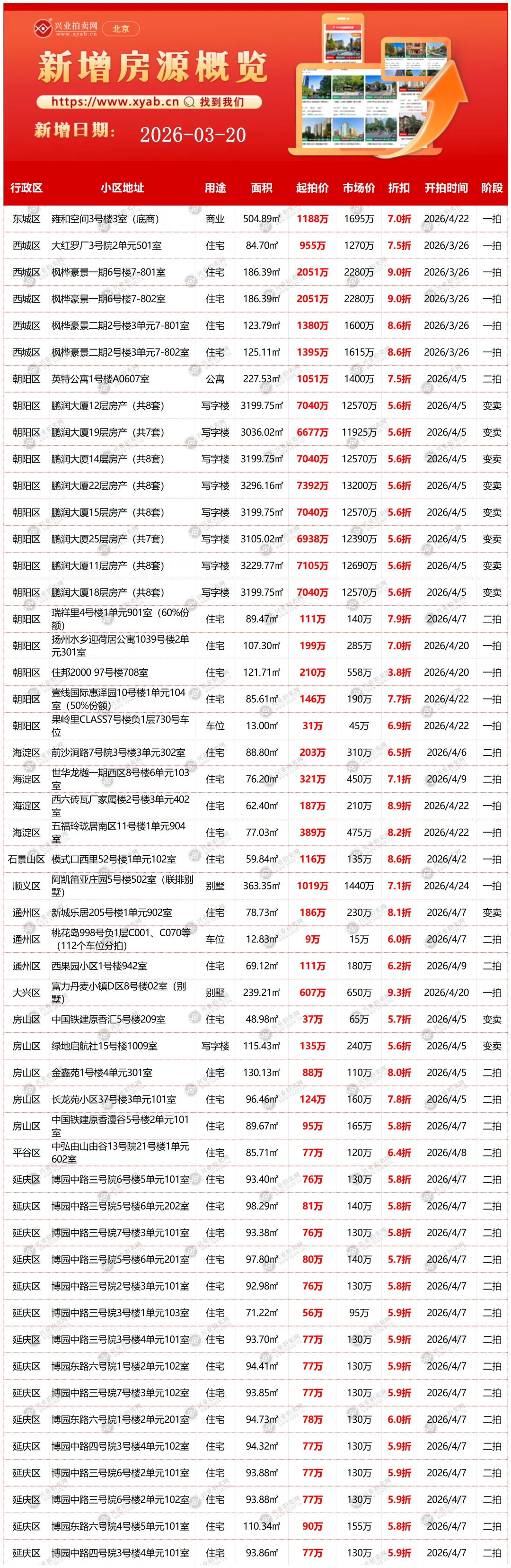 北京拍卖房产昨日新增详情