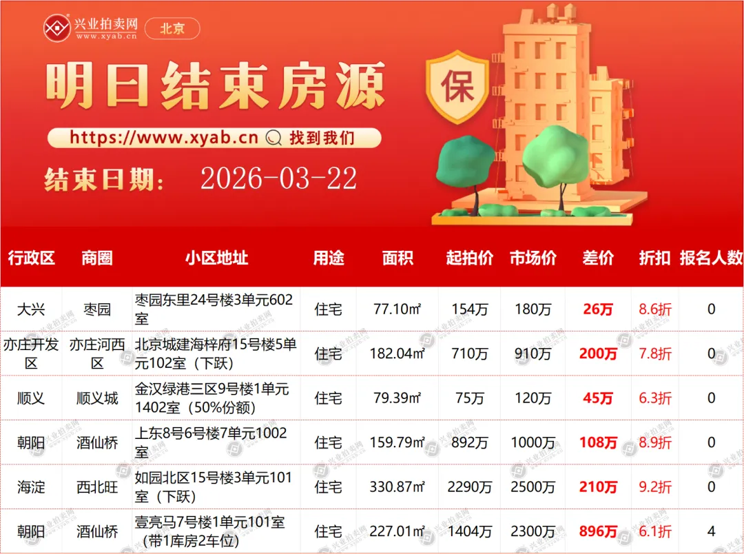 北京拍卖房产明日结束房源