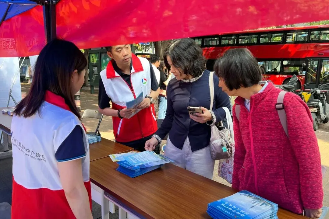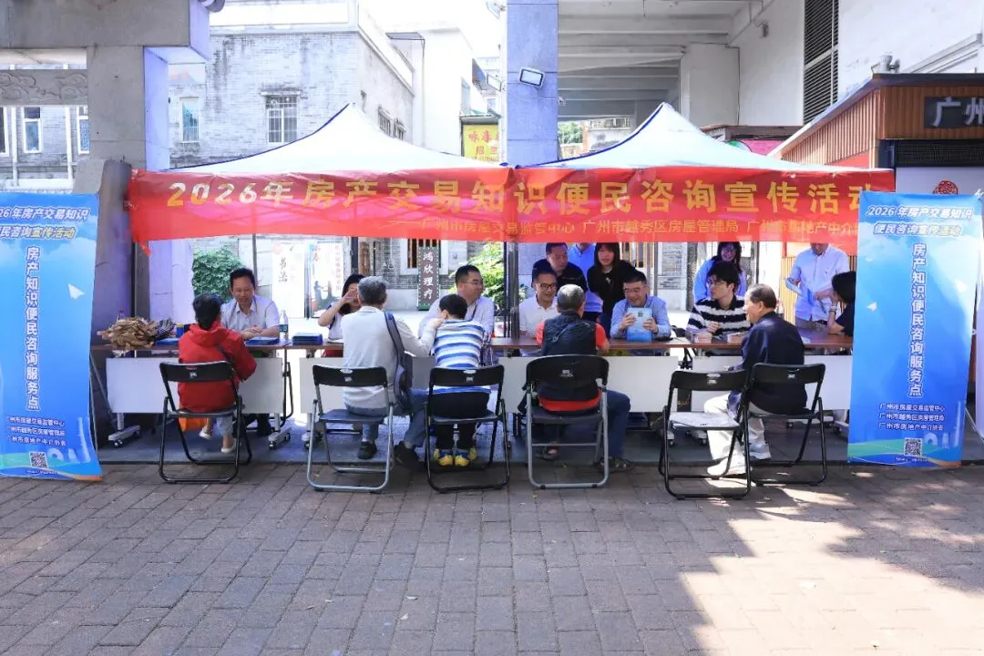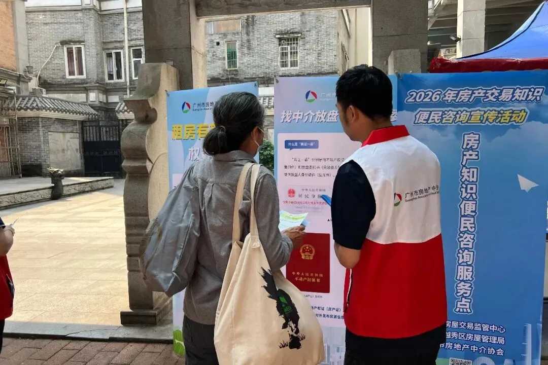 2026年3月19日上午,广州市房地产中介协会联合广州市房屋交易监管中心和广州市越秀区房屋管理局在西门口伦文叙纪念广场开展房产交易知识便民咨询活动。