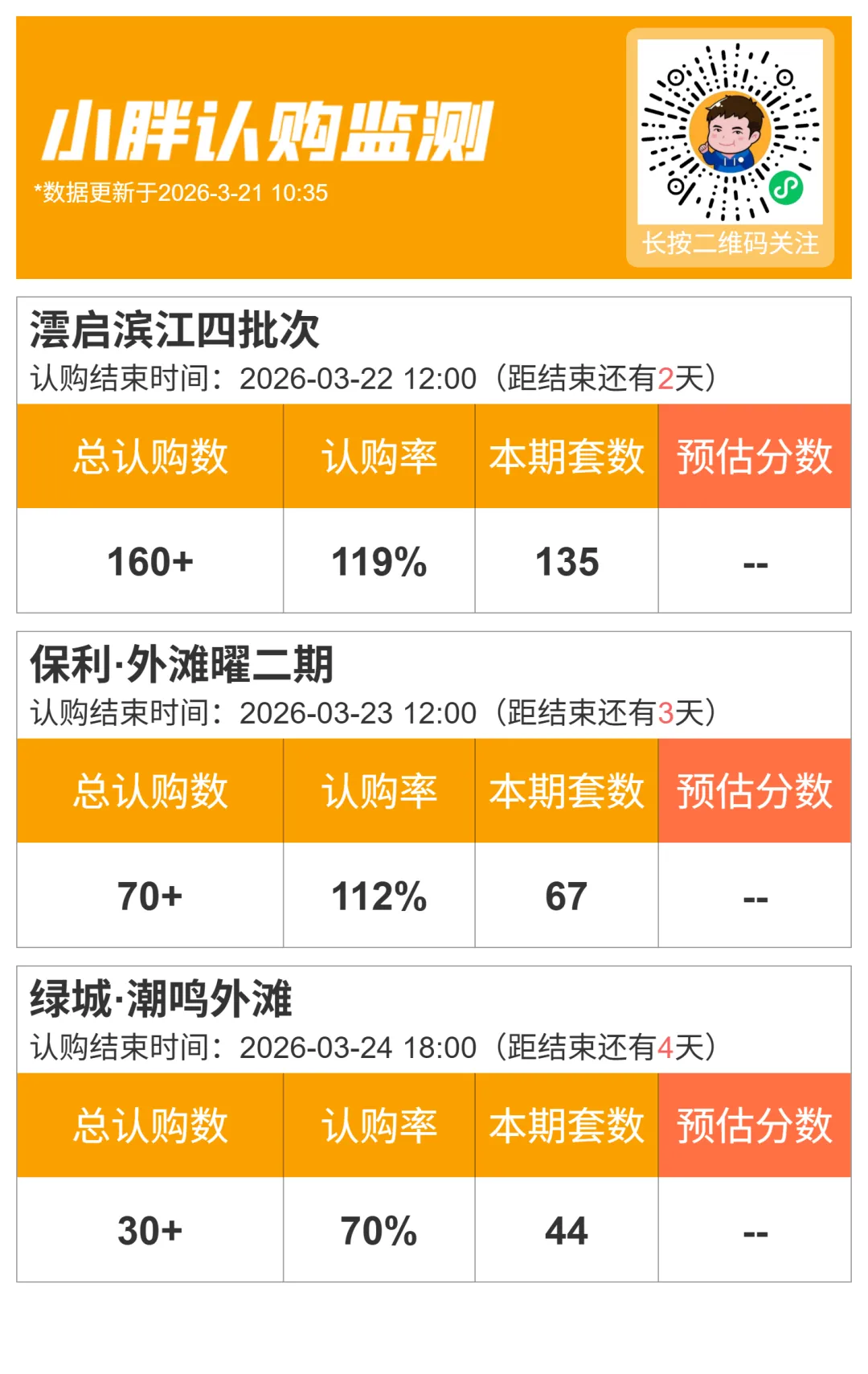 招商象屿·星耀翠湾、招商序、尚园、金茂棠前、金隅·公园东序,3月22日开启认购,至3月26日;