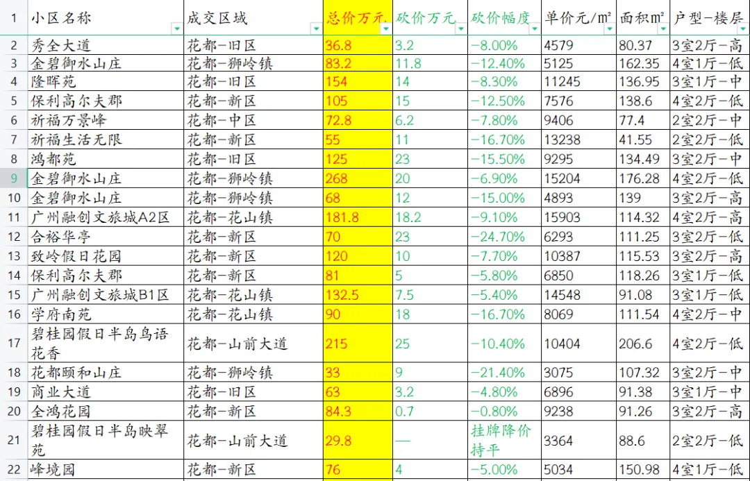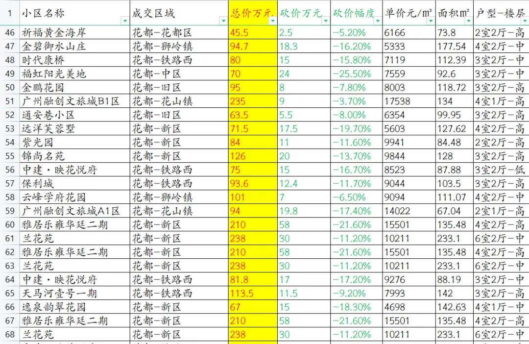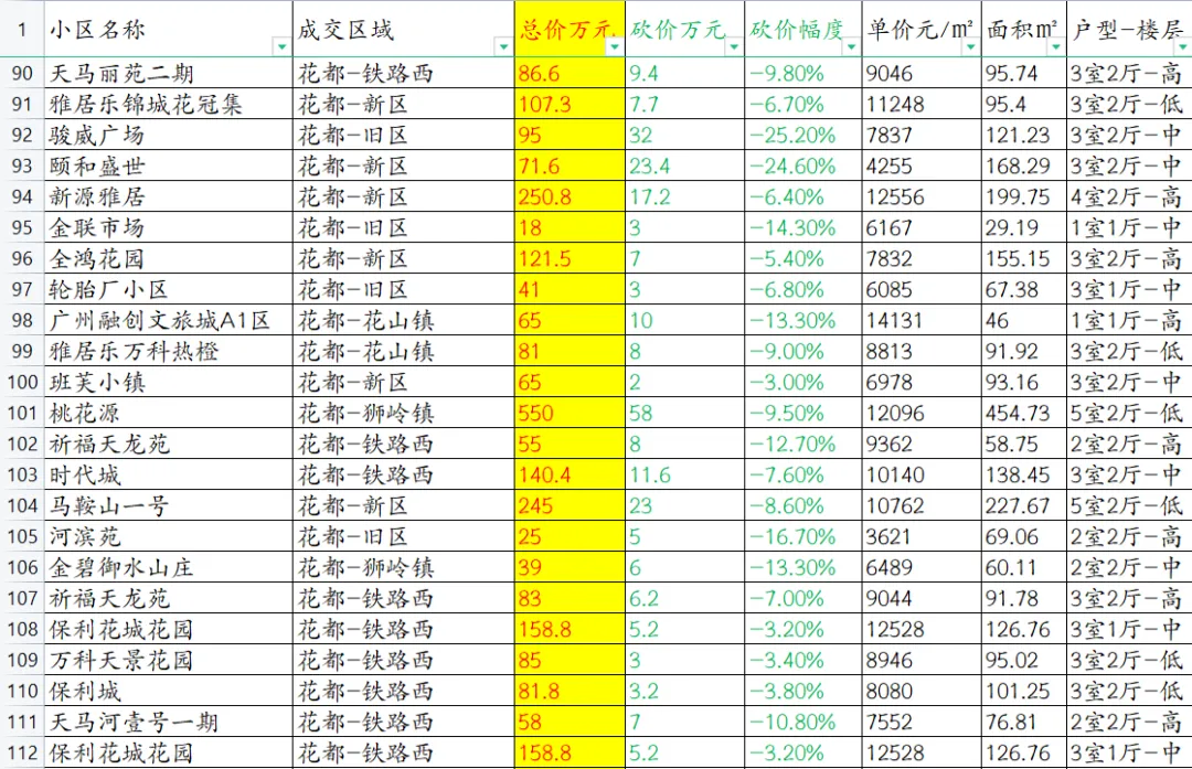 【广州楼市深度观察】花都区本次数据共覆盖111套成交房源。