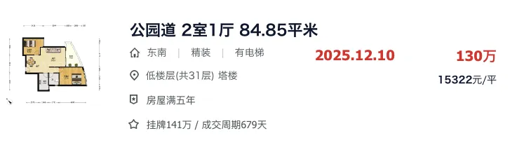 总价130万就能买近85平的南湾公园道。
