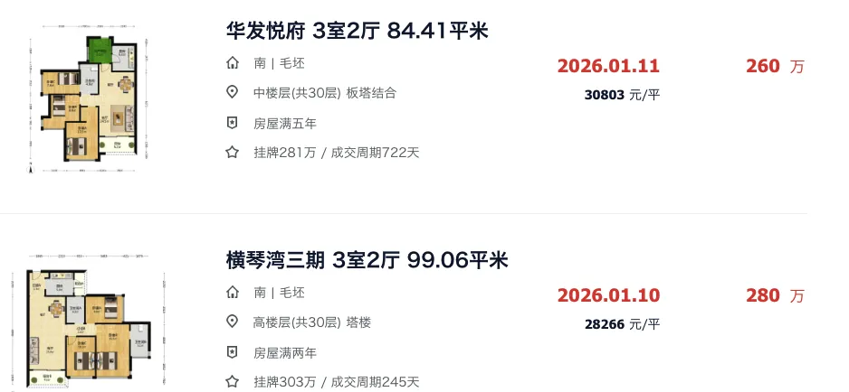 至于像横琴的二手房房价,现在的2房成交总价普遍在300万以内。