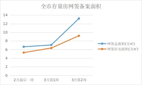 3月第1周,全市存量住房买卖合同网签备案531宗,成交面积6.36万平方米,环比分别上涨17.7%、20.0%。