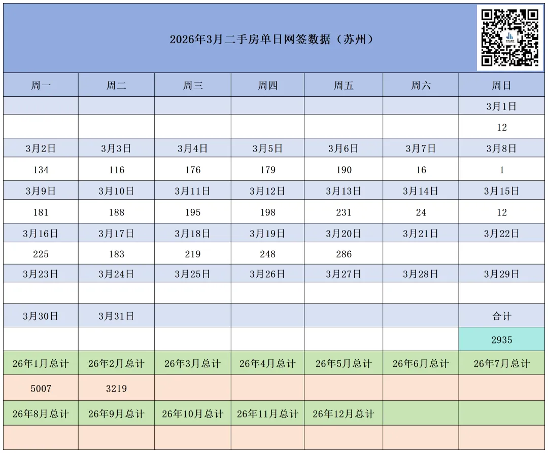 本月截至3月20日(周五),苏州六区住宅累计网签【3617套】,其中二手房累计网签【2935套】、新房累计网签【682套】。