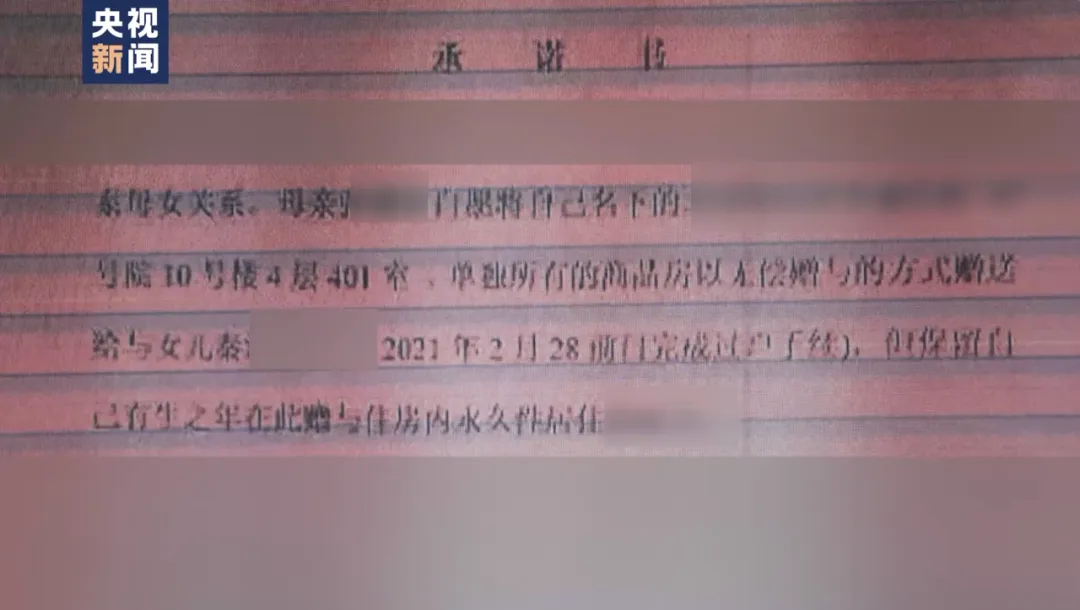 2021年2月,张老太太与女儿秦某签订了一份《承诺书》,写明:母亲张某自愿将自己名下的案涉房屋,以无偿赠与的方式赠送给女儿秦某,但保留自己有生之年在此赠与住房内永久性居住的权利。女儿秦某也郑重进行了承诺。