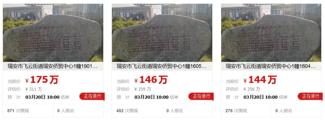 然而截至今天发稿前,这3套法拍房源围观人数寥寥,且无人报名,最终拍卖结果将在3月20日揭晓。