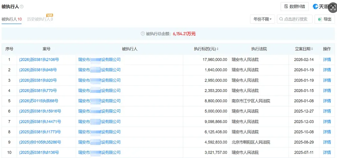 目前,该公司名下共有10条被执行人记录,被执行金额高达6154万元。