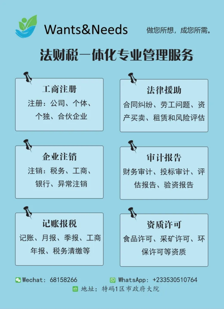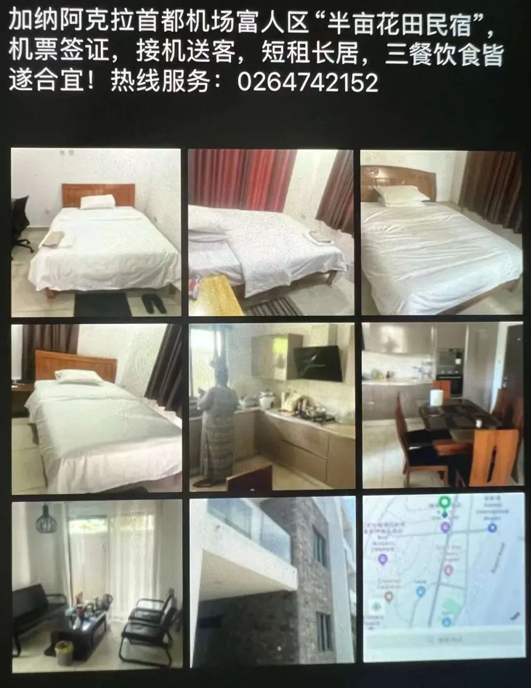 我们的业务范围包括:签证,商务咨询,接送机,酒店房间,短租房,月租房,包餐(每天会安排不同的中餐),欢迎提前预订☎️0539507607/0591396055 或➕微ghana-vivi