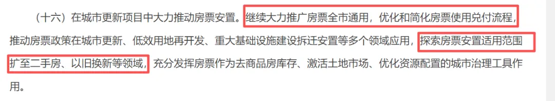 文件里明确提到:探索房票安置适用范围扩至二手房、以旧换新等领域。