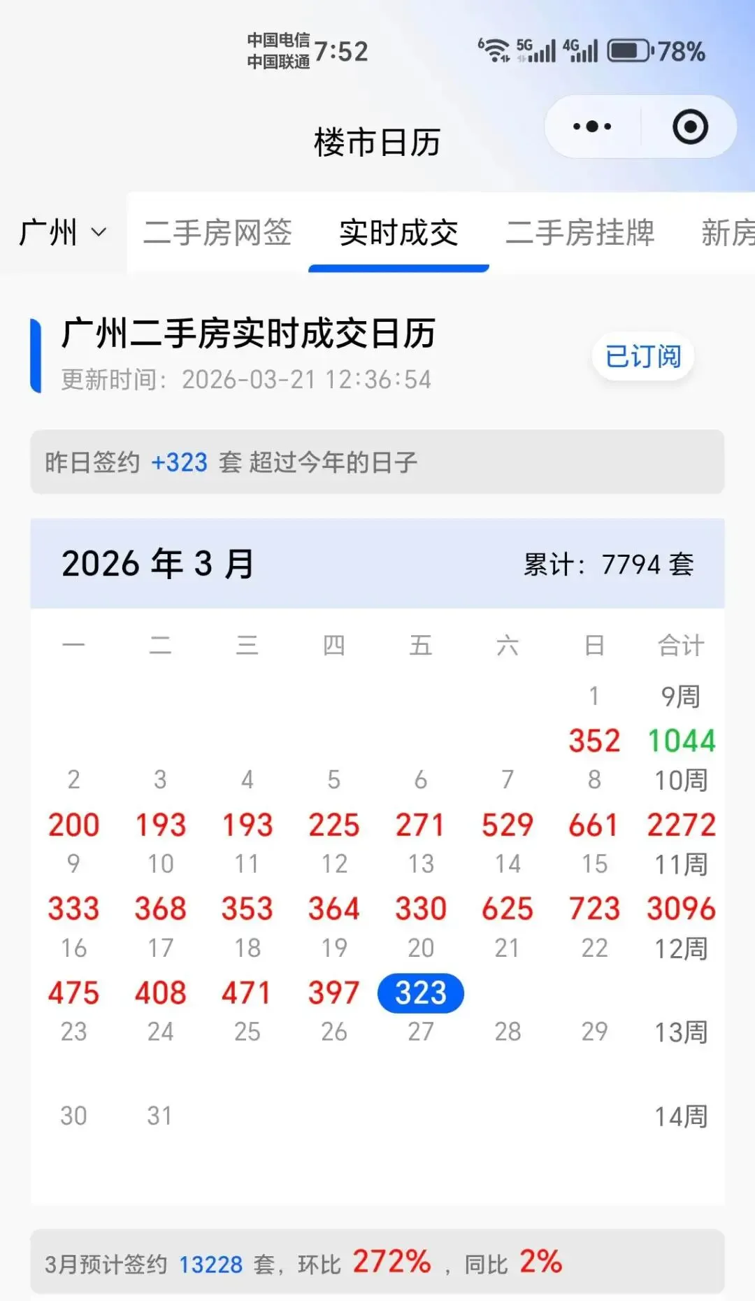 另一方面,2026年开年以来,广州二手成交回暖明显。根据冰山指数,3月前20天,广州二手成交已经去到7794套。按照冰山日历的数据预计,2026年3月份的成交数据可以去到1.3万套,想要看去年3月份同期成交数据的,可以私信我3月份,我发给你。