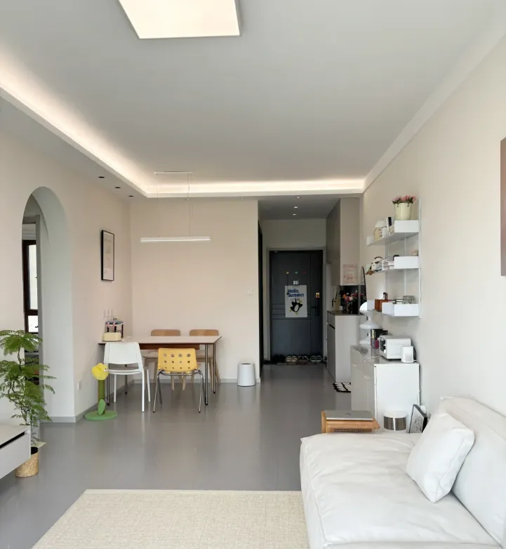 这套已经住进去的,整体偏浅、干净,留白多,适合想安静的人。那这图好在哪儿?在「收纳密度」还算有意识,右侧一排柜子能接住杂物。但问题也露出来了,开放格多,时间一长全是小票、充电线、药盒子,越住越乱。我的建议是,把最常见的那一堆改成带门的,留两格做展示就行,别坑自己。