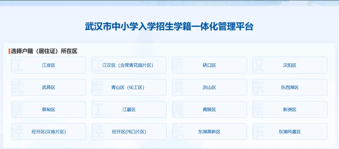 2.如果孩子为武汉水其它区户籍则退回登记主页面,重新选择对应片区进行登记。