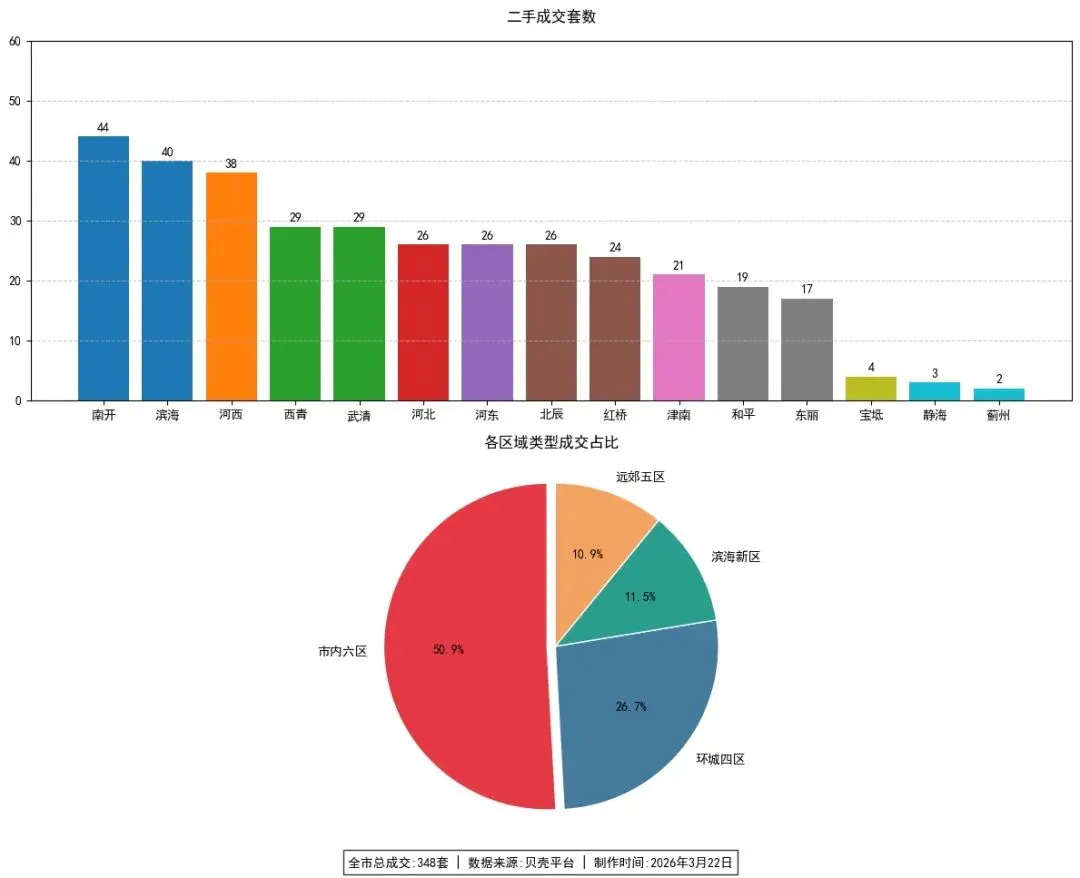 天津贝壳二手房成交数据分析(2026年3月21日,总成交348套)
