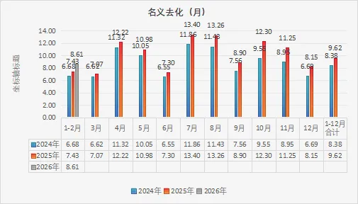全年9.62个月,2026年1-2月份的名义去化是8.61个月,数据已经很明显,总体趋势仍然是去化时长越来越长。虽然开发端萎缩,但是销售端萎缩的更快,让去化时间更长。