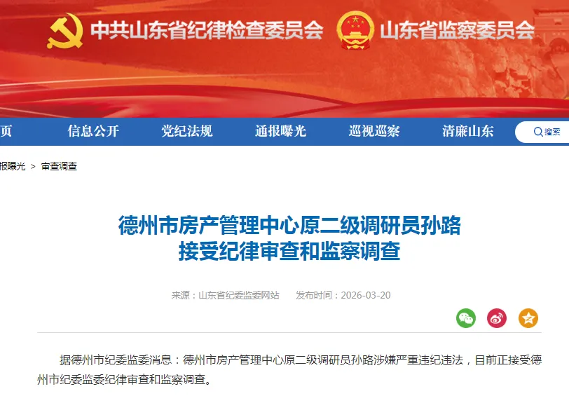 2026年3月20日,据德州市纪委监委消息:孙路涉嫌严重违纪违法,接受德州市纪委监委纪律审查和监察调查。
