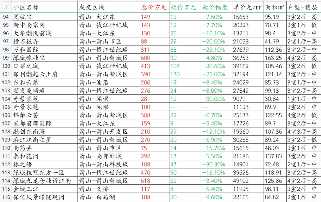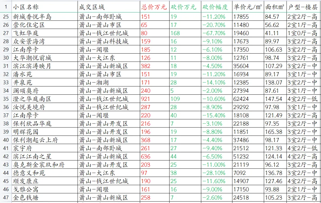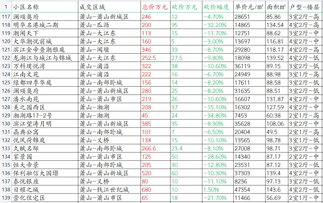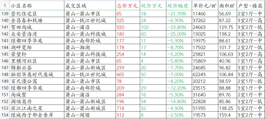 【杭州楼市深度观察】萧山区本次统计共153套房源成交信息。