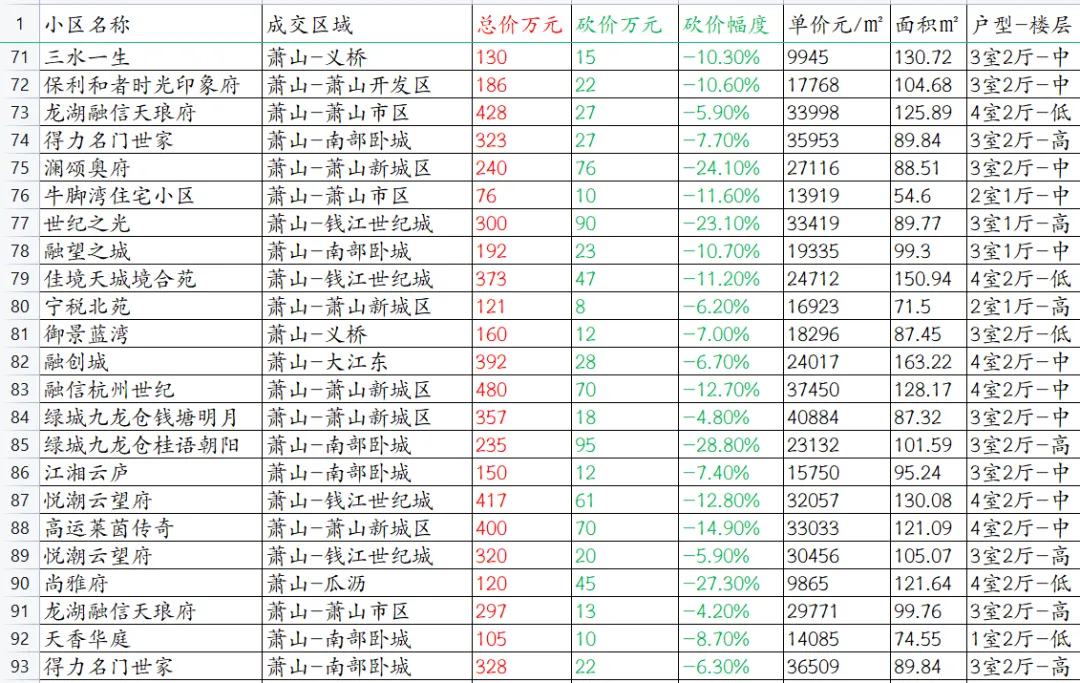详细信息查看下方图片,挂牌价=红色成交价+绿色砍价!