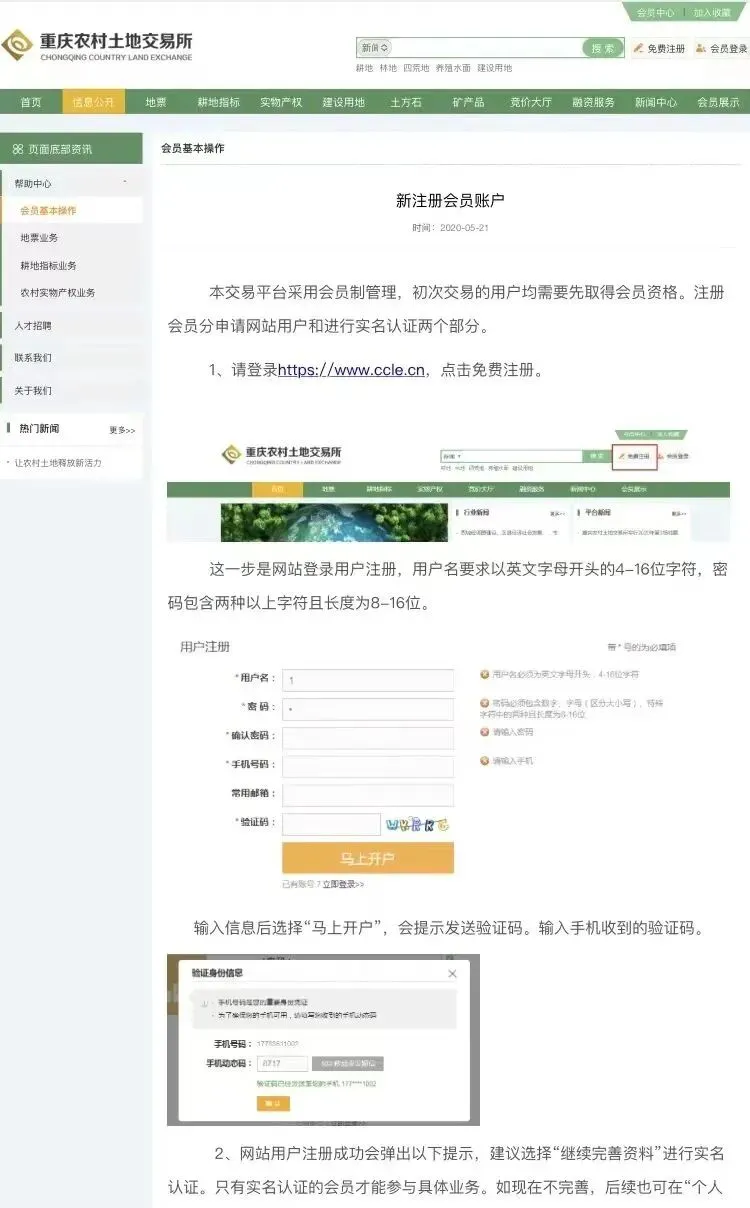 步骤一:登录重庆农村土地交易所有限责任公司官网http://www.ccle.cn,点击“免费注册”,进行网站登录用户注册。步骤二:选择“继续完善资料”完成实名认证,即可成为土交所会员,参与土交所具体业务。
