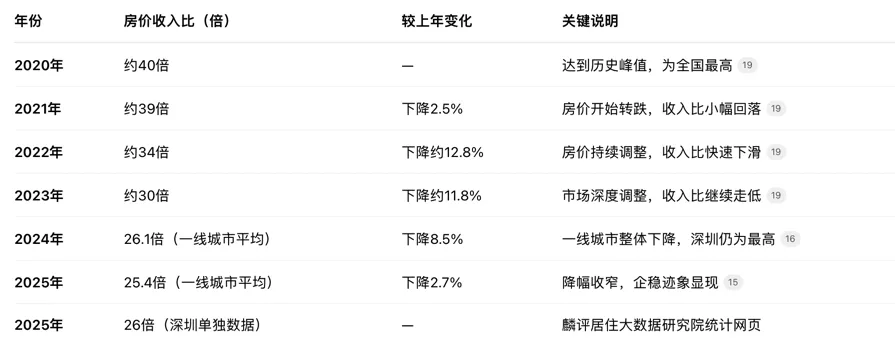 不能保证准确,只能看个大概。深圳的房价收入比如下: