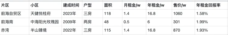 前海自贸区比较新的房子的年租金回报率还在1.6%左右。