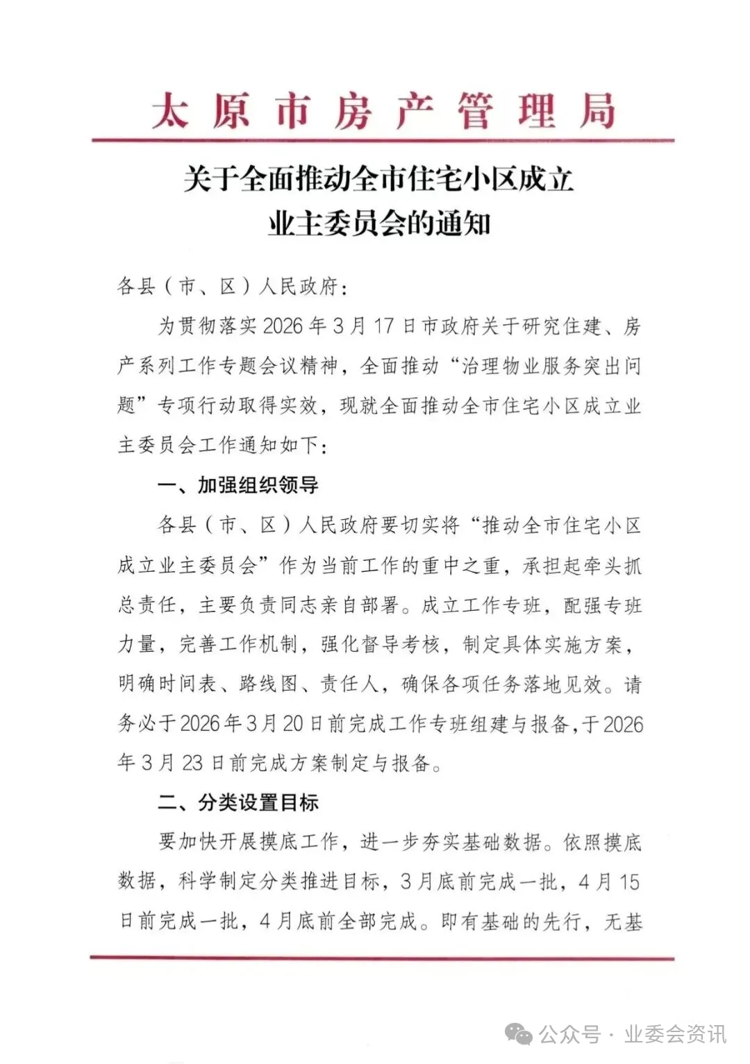 太原市房产管理局关于全面推动全市住宅小区成立业主委员会的通知