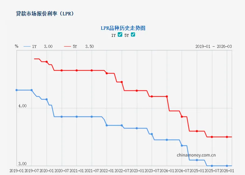 据央行消息,中国人民银行授权全国银行间同业拆借中心公布,2026年3月20日贷款市场报价利率(LPR)为: