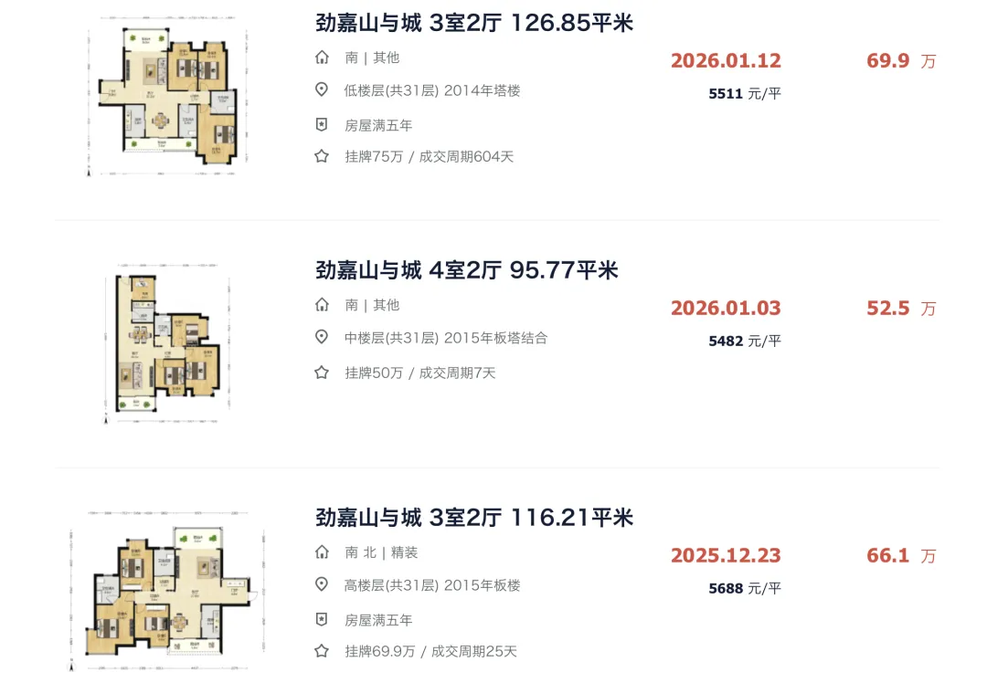 ▲ 赣州经开区劲嘉山与城交房差不多13年了,目前二手成交价维持在5字头,热度还不错